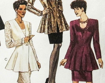 Burda 6205 Vintage 80s Asymmetrical Peplum Blouse And Slim Skirt Suit Dress Sewing Pattern